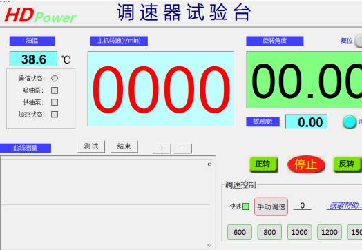 4、旋轉(zhuǎn)角度:輸出軸的轉(zhuǎn)動角度,在主驅(qū)動電機旋轉(zhuǎn)到需要轉(zhuǎn)速時,一只手按下停車按鈕(一直按,不松開),另一只手點擊電腦復(fù)位按鈕,(在保證調(diào)速器的調(diào)速狀態(tài)為“0”時),測試顯示旋轉(zhuǎn)角度為0,此時旋轉(zhuǎn)調(diào)速器的調(diào)速旋鈕,一直旋轉(zhuǎn)到大,看輸出軸的旋轉(zhuǎn)角度和出廠值對照是否合格,然后在旋轉(zhuǎn)到中間任何一個角度后,穩(wěn)定30秒左右,此時電機電腦屏幕“清零”按鈕,